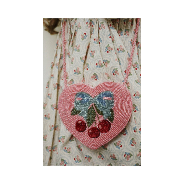 Verlieben Sie sich in diese charmante herzförmige Umhängetasche von Konges Sløjd. Jedes Stück wird liebevoll von Hand gefertigt und mit aufwendig angebrachten Perlen verziert – ein echtes Unikat für alle, die das Besondere lieben. Die zarte AMARENA-Kollektion verbindet Eleganz mit handwerklicher Qualität und ist das perfekte Accessoire.