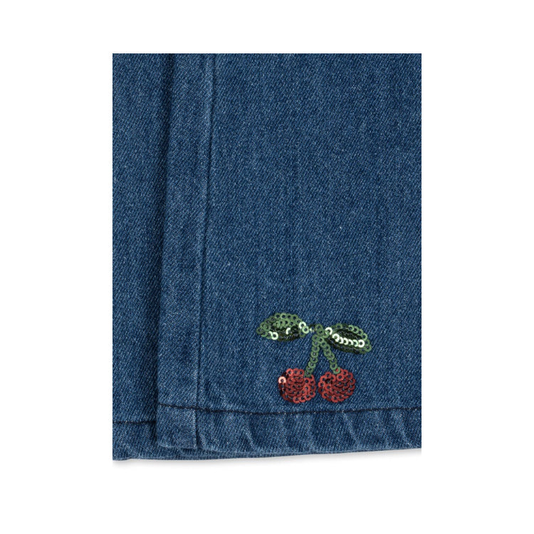 Klassische Flare-Jeans mit Charakter: Das Modell ELBA von Konges Sløjd besticht durch sein ausgestelltes Bein und verspielte bestickte Paillettenkirschen, die jedem Outfit das gewisse Etwas verleihen. Der elastische Bund sorgt für optimalen Tragekomfort, während Gürtelschlaufen und Reißverschluss für praktische Funktionalität stehen. Ein zeitloses Denim-Piece in strahlendem Blau, das Stil und Bewegungsfreiheit perfekt vereint.