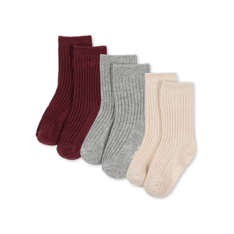 Entdecke den weichen Tragekomfort der Konges Sløjd Socken im 3er Set! Ein zarter Rippstrick und drei angesagte Farben ermöglichen eine perfekte Passform und komfortablen Look. Und das Beste? Du brauchst dich nie mehr zwischen den Farben entscheiden!
