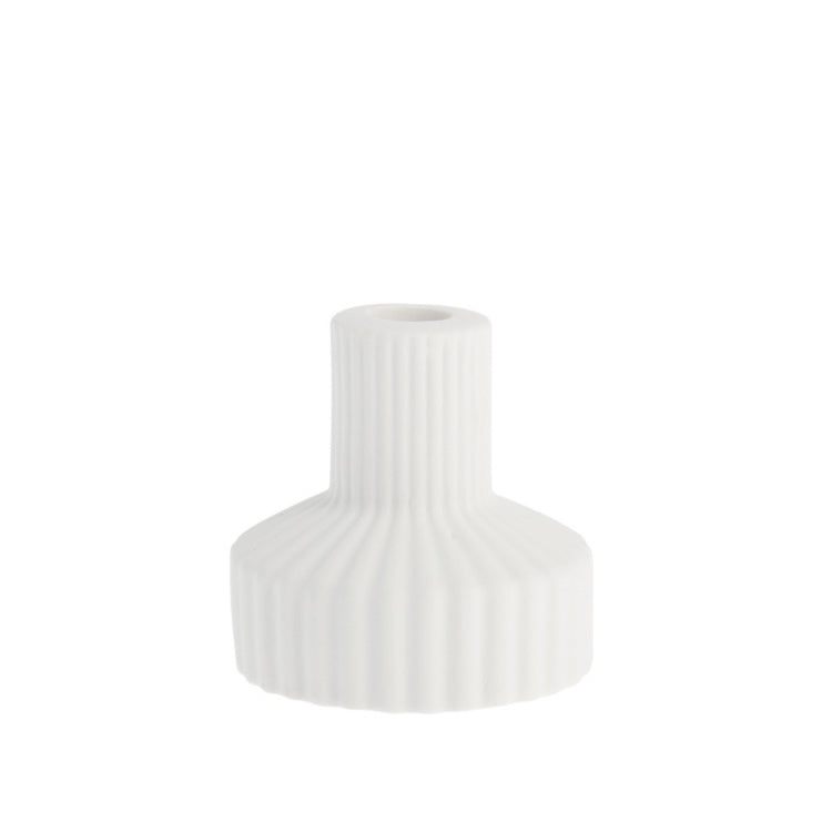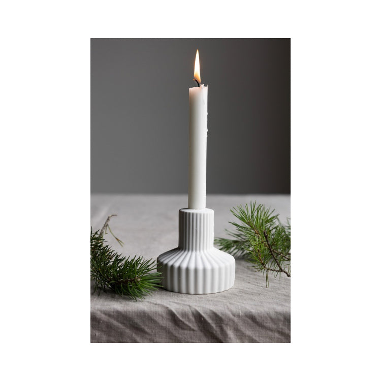 Dieser matte Keramik-Kerzenhalter von Storefactory besticht durch sein innovatives Design mit charakteristischen Streifen – ein zeitloses Klassiker-Element, das Eleganz ausstrahlt. Der vielseitige 'Samset' lässt sich kreativ einsetzen: Stapeln Sie ihn auf Büchern, um faszinierende räumliche Arrangements zu schaffen, die Ihrem Interieur Tiefe und Persönlichkeit verleihen. Die schlichte weiße Oberfläche passt zu jedem Einrichtungsstil und macht diesen Kerzenhalter zum perfekten Accessoire für stimmungsvolle Momente und dekorative Akzente.