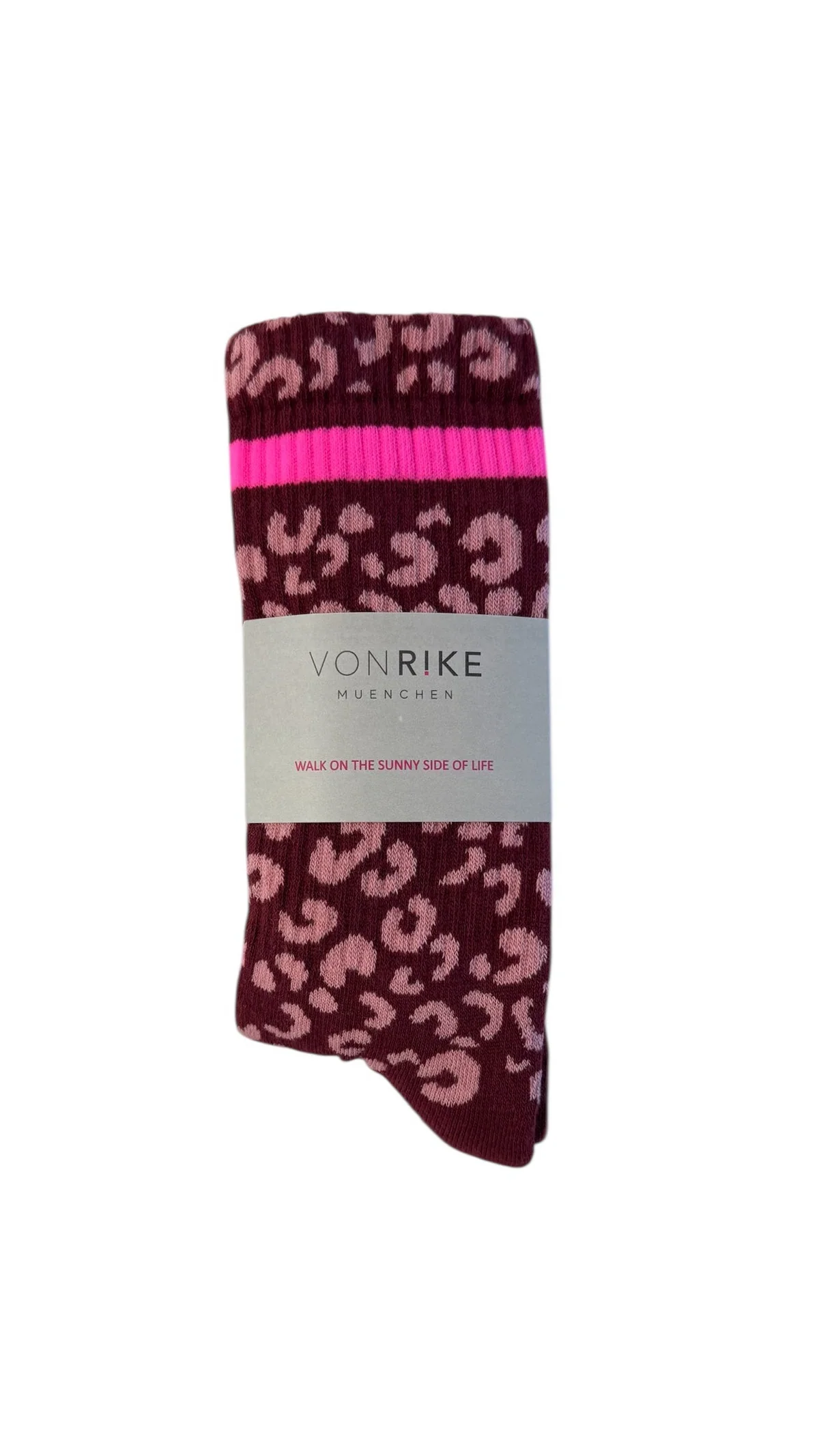 Mit den VON RIKE, Socken in Leopard Bordeaux Muster bist du immer stylisch unterwegs! Dank der elastischen Baumwolle und dem einzigartigen Rike Streifen, bieten sie nicht nur Komfort, sondern auch einen echten Hingucker für deine Sneaker! Hol sie dir jetzt und bringe Farbe in deinen Alltag!