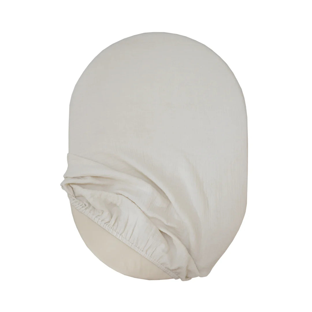 Der Bezug besteht aus weichem, biologischem Musselin-Stoff und hat einen Gummizug, der das Auf- und Abziehen besonders einfach macht. Der Bezug kann in der Waschmaschine gewaschen werden.