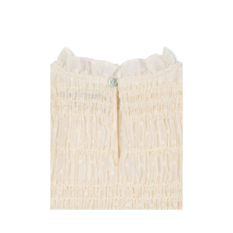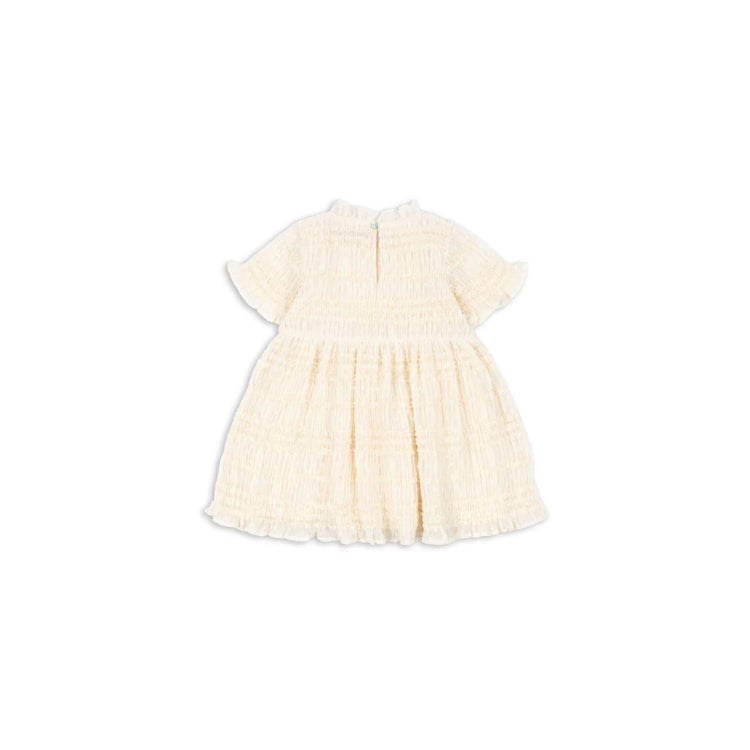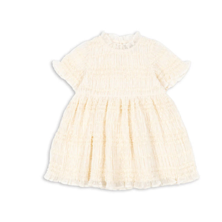Dieses bezaubernde Kurzarmkleid JOELLA von Konges Sløjd besticht durch seine elegante Kombination aus weichem Tüll und raffinierten Rüschendetails. Das dekorative Smock-Design verleiht dem Kleid eine verspielte Note und sorgt für wunderbare Bewegungsfreiheit. Das hochwertige Baumwollfutter schmiegt sich angenehm an die Haut und garantiert ganztägigen Tragekomfort. In der zeitlosen Farbe White Smoke ein vielseitiges Lieblingsstück für besondere Anlässe und den Alltag.