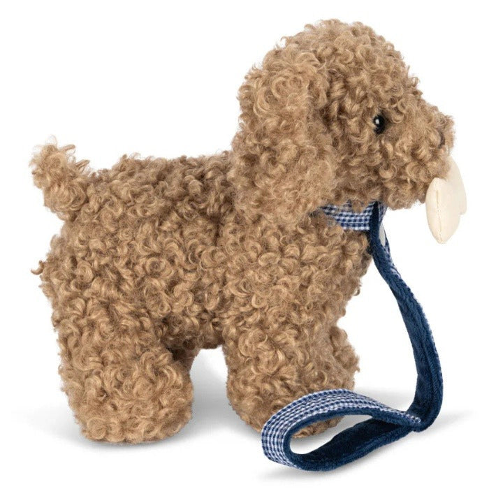 Der charmante Konges Slojd Kuschelhund in der Tragetasche „Lulu“ ist einfach unwiderstehlich. Der kleine braune Welpe mit seinen weichen Locken ist jederzeit bereit für neue Abenteuer und begleitet Kinder überallhin. Ein liebevoller Spielgefährte zum Kuscheln, für Rollenspiele und fantasievolle Entdeckungen.