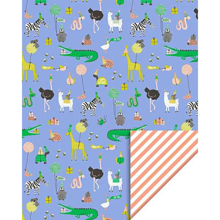 HOP., Geschenkpapierrolle, 'Party Animals Blue - Stripe Salmon'