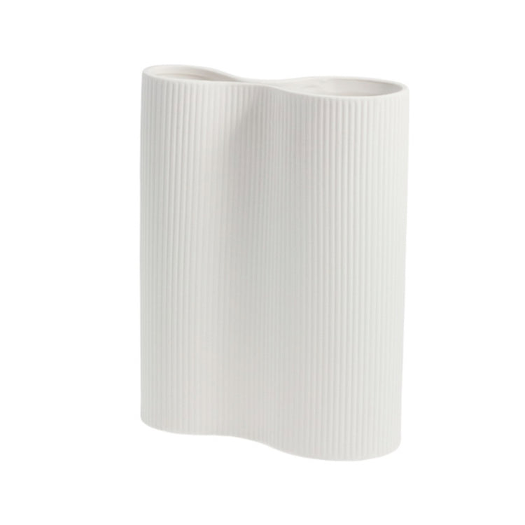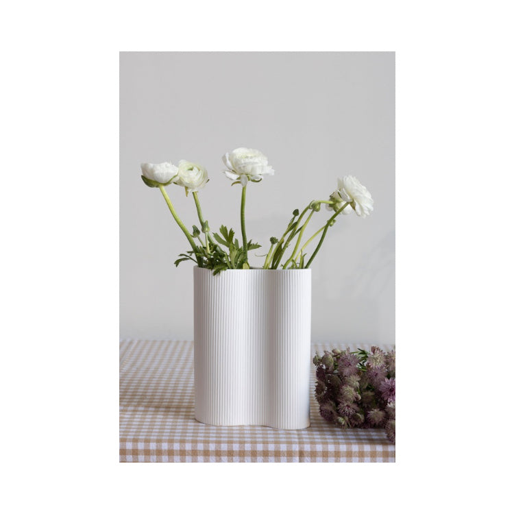 Schöne Vase 'Bunn' von Storefactory. Elegante Doppelvase aus matter Keramik mit sanft gewellter Silhouette, die Ruhe und Harmonie in jeden Raum bringt. Das diskrete Linienmuster ermöglicht vielseitige Kombinationen mit anderen Storefactory-Produkten. Ob als Statement-Piece allein oder im Ensemble – diese zeitlose Vase ist der perfekte Begleiter für getrocknete Gräser im Winter oder frische Tulpen im Frühling. Ein stilvolles Accessoire für alle Jahreszeiten.